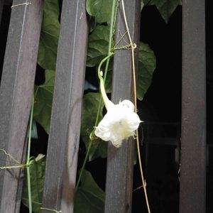 昨夜もお買い物のついでにカラスウリのお花を見てきました‼️ 今年のお花は昨年の3分の2くらいの大きさ、、小さい感じです。 でも、素敵なフォルムはそのまま、真夏の夜の夢、そのものです。 いつ見ても素敵な夜の花レースの花びら❣️ まだ見たことがない皆様、夜に咲くので 是非キョロキョロしてみてください。