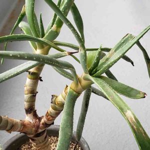 次の枯れかけシリーズいっときます? 枯れかけては無いかな? 室内で徒長し続けた、アロエ ラモシシマ。 葉がヒョロヒョロ。 外に出し始めました。 新しい葉を強くし、古い葉は順番に切り落としていく予定です。 ちょっと時間が掛かりそう(;^_^A やり方が間違ってたら、御指南下さいm(_ _)m