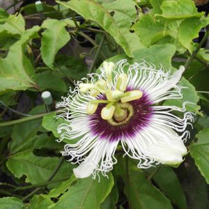 トケイソウ交配種でデカイスネアナと呼ばれる花です。交配親種はブラジルトケイソウとオオミノトケイソウで、果実は食用になりますが、皮が厚くて可食部が少ないです。