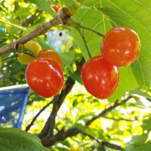 サクランボ🍒をちょっぴり採って食べました🎶🎶 甘酸っぱくて美味しかったよ😋 残りはヒヨドリがたくさんやってきて食べていきました~🐦