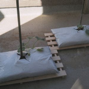 食べたメロンの種からのメロン栽培、富良野メロンのF4です。 袋に定植しましたがベランダの熱が伝わるのでカインズで2枚組のスノコを買って来て下に置いて見ました。 去年までは袋を縦に使っていたのですが、平面にしたので高温になってしまいそうなので、これで様子を見たいと思います。 まだ定植してから時間が経って居ないので動かした事によっての根へのダメージもないはず。 根がもう少し伸びたら、袋の端に穴を開て、そこから水や肥料を与えたいと思っています。 水や肥料も遠くにある方が根が伸びて行くのではないかな?🙄