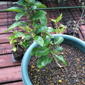 スーパーで買って食べたレモンの種からのレモンです。 年末にヒョロっと伸びた枝を選定して一気に大きな鉢に移しました。 冬の間に葉が全部落ちて、もしかして枯れちゃったかなと思っていましたが、何とか新しく葉を付けて元気になってくれました。 種からなので実を付けるまでは恐らく10年くらいかかるのかな? 気長に見守りたいと思います!