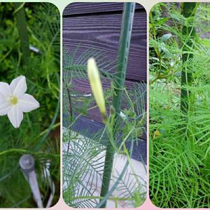 ルコウソウ(左)(背景) ルコウ朝顔(右) やっと咲いたルコウソウ❗ 小さな⭐❗🎵