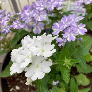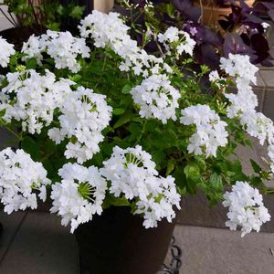 真っ白のバーベナとヒューケラのパーブルと鮮やかなグリーンの葉っぱ。美しい💕