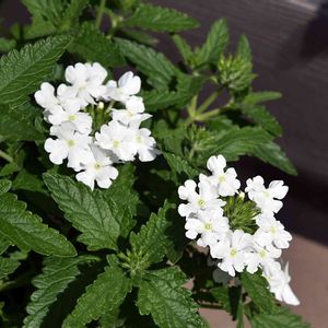 2022.05.12 冬越し2年目のスーパーベナ ホワイト 痛みが激しいですが、植え替えて、土を新しくしたら、咲き始めました。