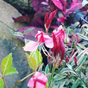 夏の暑さもなんのその… お花がずっと咲いています💓 別名 ハクチョウソウ 白蝶草 小さな蝶々🦋のようなお花が咲く事から名付けられたとか… これは矮性の品種でコンパクトタイプ😊 でもかなり伸びてます😅 ガウラレインボープチ