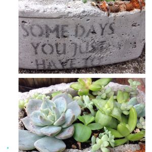 お気に入りのコンクリ鉢1個目に葉挿しの寄せ植えをしました😊 ikuraちゃん、遅くなっちゃったけど、やっぱりコンクリ鉢、カワイイ~😍