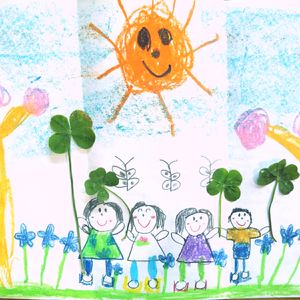 🍀四つ葉記念日🍀 うちの子は双子の女の子🌼🌼 春に双子妹が、人生初の四つ葉を見つけた時、双子姉はすっかりすねていましたが、、、 今日は双子姉がなんと2つも発見しました😳🍀🍀 初めて自分で見つけた四つ葉、おめでとう😆‼️ 今度は妹がすねたので(笑)、春に妹が描いた絵とコラボ写真を撮ってみました🌼🍀