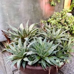 結果的に水やり辛めで育ててる、アリスタロエ属 綾錦 別名 アリスタータ クシャクシャと丸まった姿、良いなぁ🥰