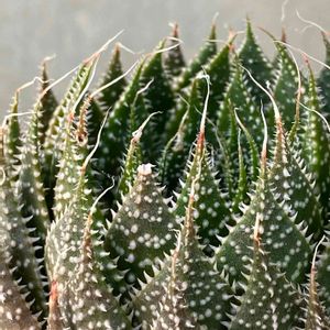 つんつん葉っぱが魅力的なアリスタータ(*^◯^*) 買ったばかりの頃は、2重遮光しないと育たず、一番の虚弱体質ハオ深窓のお嬢様。 ・・・・でした。 少しずつ大きくなり、遮光が一枚ずつ取り払われ、とうとう直射日光に耐えるようになり、ハオルチアの中では一番の成長を見せました。 もう、お嬢様とは言えないです(笑) 甘やかしてお水をあげているからか、10月に植え替えたばかりなのに、また大きくなってます(*´-`) 4寸鉢なのに‥☆ この子は、ガステリアorハオルチアのどちなのでしょうか?