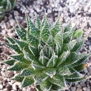 アリスタータ アロエアリスタータとガステリアアリスタータと2つの書かれかたをしているのでガステリアなのかアロエなのか疑問に思っていたのですが、2つの交配種らしいです。 見た目より丈夫で寒さにも強いらしいですね。 明るいグリーンで透明感もあり繊細な感じに見えますが葉は結構かたいです。 どうやら自分は葉が規則的に密集している植物に惹かれるようです😊