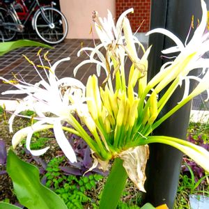 浜木綿’19,7,19. 7:46 ヒガンバナ科ハマオモト属 インドネシア、スマトラ原産。 種が太平洋沿岸部に流れついて日本各地で自生している。 万葉集に柿本人麻呂が歌に読んでいる。 古くから日本各地で自生してるので日本原産かと思っていた。 夜から開花して深夜に百合の花のような香りがするそう。 深夜には歩かないので香りは無理💦