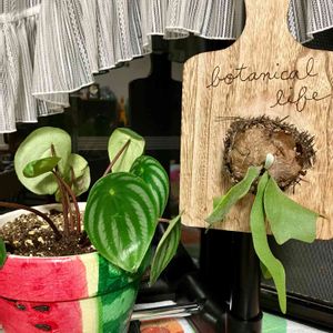 先日、外が好きさんが、またまた私の持ってない多肉ちゃんばかり送って下さいました🙏 嬉しすぎて、特にその中のコウモリランとスイカぺぺ🍉に制作意欲が…😅 コウモリランはダイソーの木製まな板に文字を焼き付けてそれらしく…なってるかな🤔? スイカぺぺはそのまんまスイカ🍉のリメ鉢〜🤣👍 これからモリモリした時が一番見頃かも〜❣️ いつも送ってくださるのは持ってないものだらけなんで、ホントにお礼にお返しできるモノは何もないのですが、私の愛💘だけでもいいですか…( '-'* )?