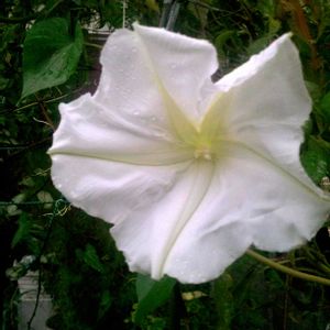 240922深夜と23早朝の夕顔 夜は怪しく白く大きく開き翌朝には萎んでた 夕方が来ると違う場所でまた満開🌼 心あてに それかとぞ見る 白露の 光そへたる 夕顔の花