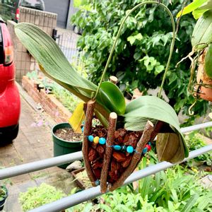 🍀胡蝶蘭🍀 最近作った着生蘭用のポットに 根出しした胡蝶蘭を植えたものです😄♬♬ 春に剪定した梅の木の枝を乾燥させてたので それを使いました😙〜 塗装や装飾のこととかいろいろ考えてたんどけど 早く形にしたくて植えちゃいました🤣🤣🤣 試作なのでこれから改良版を作っていきます😊 めっちゃ楽しい時間です😘 Phalaenopsis aphrodite