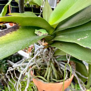 🍀胡蝶蘭🍀 いただきモノの胡蝶蘭🦋 半年ほど経ってやっと元気な根が出てきました❣️ 新しい葉も動いてることだし 早ければ年が明ける頃に咲くかなぁ😄♬♬ Phalaenopsis aphrodite