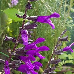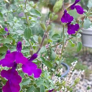 🌿可愛いチェリーセージが咲き続ける中、 じっと我慢の夏を通り越しようやく咲き始めた チェリーセージ バイオレット💜 まるで、秋の出番を待っていたかのよう… やるなぁ~( ̄ー+ ̄)🌿