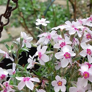 🌿随分前に、芝桜をダメにして それっきり💦 可愛いのを見つけて ブラ下げてみたら 🌸花見気分𓂃 𓈒𓏸◌ まだ、ガランとした庭が ポッと明るくなりました 近所の桜も いよいよ 咲き始めましたよ🌸(❁´ `❁)