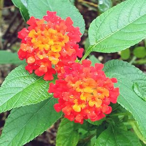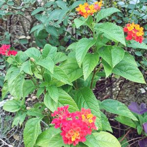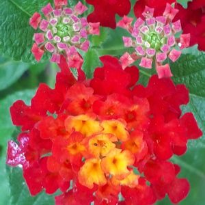 赤とオレンジ色のランタナさん 咲く度に赤が多かったり オレンジ色が多かったりと 違っていて楽しめます 💝🧡🌿(* ॑꒳ ॑* )🌿🧡💝
