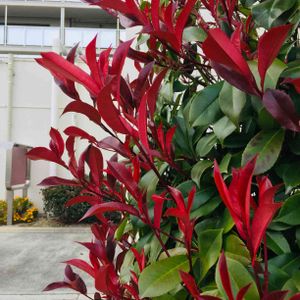 セイヨウカナメモチ 西 洋 要 黐 🌹 バ ラ 科 カナメモチ属 木・ 常緑 学 名 = Photinia x fraseri Dress 別 名 = レッド・ロビン アカメ 日本原産のベニカナメモチ Photinia glabra f. benikaname と 中国原産のオオカナメモチとの 混雑種で、 🇳🇿ニュージーランドで 育成された ものを、大船フラワーセンターが 全国に普及させたとの事 。 英 名 = Red Robin 草 丈 = 3~10 メートル 開 花 期 = 5月~6月中旬 5月 5日 (火) 8時 54分 名古屋市 天白区内 の 大学キャンパス内にて