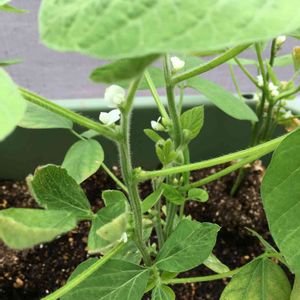 ペットマトのおつまみ枝豆、徒長気味でしたが、支柱をこうして何とか様になりました。画像ではわかりにくいけど、茎が折れかけていたので、セロテープで固定させてます。頑張ってほしいです。