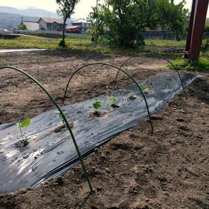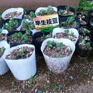 枝豆初挑戦。 朝晩はまだまだ寒いからトンネルしなきゃいかんかなぁ