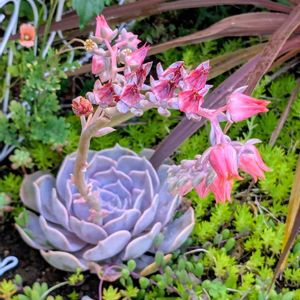 銀翁玉がやっと開花🌸 近くにあったヘルテリーもケバい花😅 成長点がおかしいラウシーも花芽が✌️