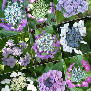 いろんなガクアジサイに出逢えました🎵 ↖️城が崎 ↗️斑入りガクアジサイ ↙️ナデシコガク ↘️流れ星 装飾花が個性あって可愛いですね~🥰💓