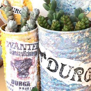 秋にカットしたクラッスラをさしてたら 春には もりもり💕 リメ缶がコーン缶で小さいので 既にあふれてます😅