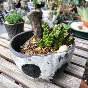栽培が難しいとされている、小型冬型クラッスラを、シマムラ園芸ゆるぅ~っとマーケットで購入した、まっきゅ~さんのモルタル鉢に、寄せてみました! これも、夏越しが課題ですが、なんとか増やせるまでに栽培技術向上できると、うれしいけれどなぁ! なぜに、手前にアンモナイトの化石かって? なんとなく、似合いそうなので☺️