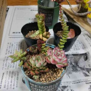 数珠星と若緑の抜き苗をいただいたので、ツンツン寄せ植えに挿してみました(◍•ᴗ•◍) 早くぎゅうぎゅうにならないかな( ›ω‹ )