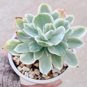 コンバンハー(*˘︶˘*).。.:*♡🌙 今日はね朝6時に起きて (まだ暗い…) 7時台の仕事からスタート💦 朝…弱いんだよね😅⤵️ 帰宅した頃日が沈み掛けてて慌てて この1枚🤳💓 🏷️白い水曜日♡ 「レモンローズ錦」🍋 秋冬の少し葉っぱの荒々しくなる 感じが好き(*˘ ˘*) 子株も無事に夏を越せて 良かった💟 今日もお疲れ様😌💓
