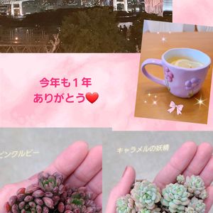 2024年も最後の日になりました(⁎˃ᴗ˂⁎)💕 まだ全然そんな気持ちになりませんが…⭐ 今年ラストと思いお迎えした2種類です。 ピンクルビーとキャラメルの妖精✿*:・゚ きっとピンクルルビーでしょうね! うーん🤔3回目?のリベンジかな(笑) 明後日から帰省予定なので早速外で植えていたら… ご近所のヤングママさんが鉢を2つ持ってやって来た😊 苔いっぱいの鉢の中で首を伸ばした銘月ともう一つの鉢を植え替えしてあげました。 若緑を気に入ったみたいなので一緒に植えてあげました✨ネックレスも+して。 増えすぎた姫秋麗も嬉しそうに抱えて帰られました🎶 また来ます!って嬉しかったな(*´ω`*)⤴️⤴️ 自分の最初の頃を思い出します🤭🔰 2025はタニラー歴も7年目になります🎶 今年も1年🏷️ぐんぐん祭り 途中から引き継ぎました、 🏷️ウサぴょん祭り 共にありがとうございました🥰 それから私の多肉ちゃんを見てくれて💬もありがとうございました( ⁎ᵕᴗᵕ⁎ )🎉 写真はお台場レインボーブリッジです✨✨ 今年もマグカップ☕買いました❤️