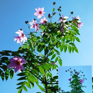 お早う御座います 今朝はとても気持ちイイ秋晴れの朝ですこの夏 皇帝ダリアの主幹が腐食して仕舞い今年は諦めて居ましたが脇から出ていた割り箸位の細〜い枝が知らない内に成長していて 何と 今朝表へ出たら花を咲かせてくれていました😭😍 良く見たらツボミもたくさん着いて居ます 本当に感謝 感謝です🙏 写真下の2枚は現在の ミセバヤ 二点です 左側の大きな方は夏の日差しを避けて日陰に置きっぱなしで未だに青い葉っぱです 右側の方は大鉢を選定した時挿し穂してたら自然と活着してくれてもう元気にピンクの花を咲かせてくれています。