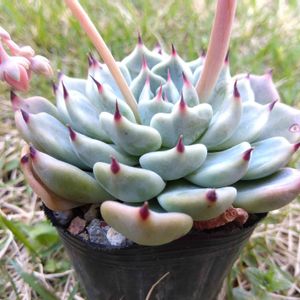 ご覧頂きありがとうございます♬ 「ブラックネイル」エケベリア属 爪はまだ赤いですが 大きくなりました花芽2本…🥰