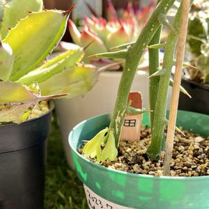 毎月11日は 🏷️棒の日✨ 2025年、初の棒の日♪ どのコにしようかなーと思いましたが、このコに決定‼️✨ 去年お迎えしたアデニア・グロボーサちゃん💕 寒いけどトゲの棒はまだ成長してるようです😊 小さな葉もお迎えした時より落葉したけど、まだ伸びてる棒は葉が付いてます💕 今年も🏷️棒の日を宜しくお願い致します🙏