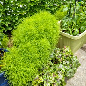ヒューケラの鉢から予想外に出てきたコキア😂💦壁のように立ちはだかっています(ㆁωㆁ)💦