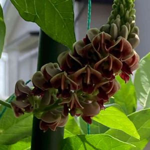 アピオス マメ科ホドイモ属 ヒャッホー😆🎶 GSでは、たくさん投稿あるみたいですけど😄 初めての植物見ると、テンション上がるわー🎶🎶 なんて個性的で可愛いのかしら😍 お芋、栄養価が高いんですね 畑のうなぎといわれているそうです。 他の方の投稿で教えて頂きました♪ ありがとうございます😊😊😊 百合が原公園の温室🚶♂️🚶♂️🚶♂️