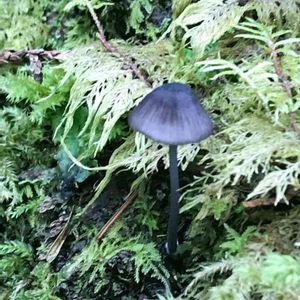 8月29日、古賀志山にて、初めて見る👀「コンイロイッポンシメジ」毒は無く食べられる様ですが、余りに色が、毒々しい濃紺のためか、味も食感も解らないようです⁉️
