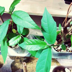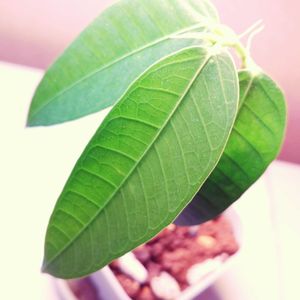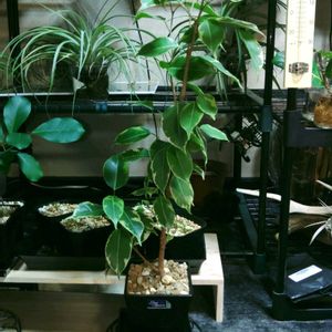 Ficus virgata. ハマイヌビワの苗。 屋外では葉がアコウと変わらないような大きさにしかならないですが、屋内の無風なところでは葉が長くなります。 力学的に葉の大きさを決めているのかな。