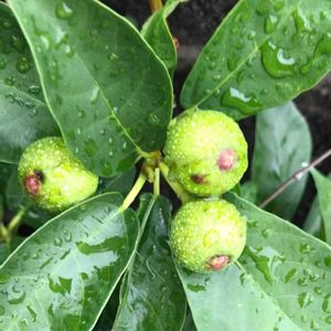 イヌビワ、花を見ていないのにいつの間にかか実がなっている!と不思議に思っていました。調べてみたら花は果実状で外から見えない集合花、イチジク族に見られる花序、とありました。 名前は果実がビワに似ているが味は劣るというところから。熟すと色が黒くなるらしい。食べられるそうです!!! でも試してみる勇気はありません。
