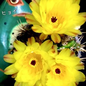 おはようございます😊 GSの今日のお花 サボテン サボテン科 サボテンにはほぼ興味が無くて😅 家には無かったのですが、早く亡くなった母のサボテン好き遺伝子🧬❓ 孫👦が欲しがり昨年から幾つかのサボテンが増えました❣️ 銀手まりには可愛いお花が咲きました💛 2枚目はヒボタン、鬼雲丸、荒波🌵 🏷️月曜日にビタミンカラー 🏷️月曜日は元気色の花