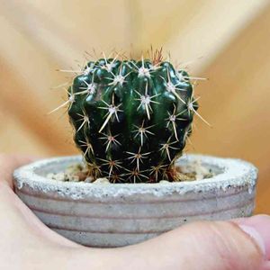 ノトカクタス・鬼雲丸。深緑の肌、緻密なトゲ、扁平な体。いいね😁