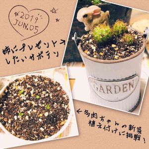 ひとまわり大きめの鉢にお引越し。去年は花を咲かせてくれたサボさん。大きくなって今年も咲かせて欲しいな♪
