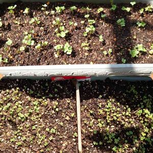 上は二十日大根、ラディッシュで 下は期限が大幅に切れてたたぶん 小松菜だったかなぁ〜? 期限切れてたから全部蒔いたら すっごい芽が出てるじゃん💦💦 間引きしなイカンよね?(´Д`)ハァ…