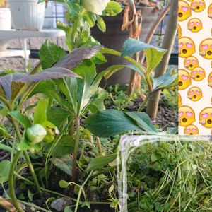 右下の山盛りの草に紛れて クリスマスローズが咲いてた
