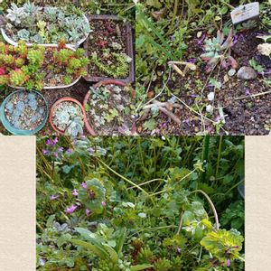 したの写真のように草でボーボー その草をむしったら上の2枚の 状態が現れました✨ 左上はビニールに覆われてたんだけど ビニールの中はボーボーの草でいっぱい そのおかげか?多肉たちは元気だった😊 ビニールに草のカバーが良かったんだろーなぁー😊 地植えにした恋心?も草が守ってくれたみたいで成長してる✨