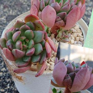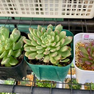 手前のこたち、ピンクルルビー🌱 葉先がピンクで可愛いです💞 後ろは、右がブルーサプライズやったかな~ 左何だっけな😅笑