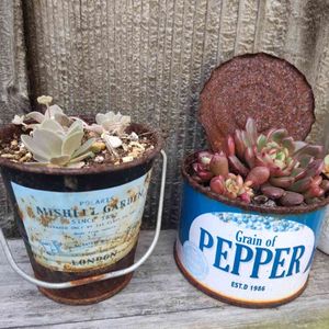 サビサビ缶がいい味出してる多肉ちゃんたち 左の子持ち蓮花は今日友達にもらったもの 何度育ててもいつの間にか消えてしまってます 左はピンクルルビー