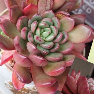 昨日からずっと荒れた天気⛈で全然多肉事ができないよー😥 この子ずっとピンクルビーだと思ってたけど、正式にはピンクルルビーなのかな? 右のぷくぷくした色が濃い2つはダイソー産。なかなか可愛い💓
